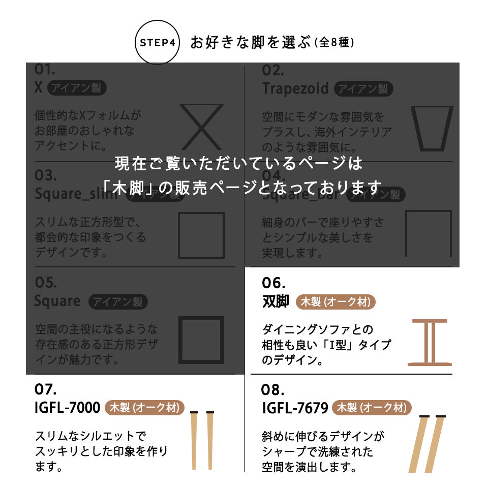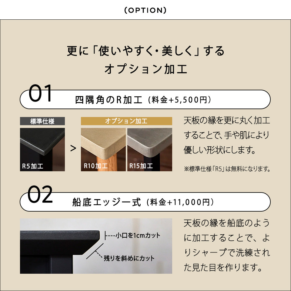 | 素材 | ■ 天板:オルトレマテリア ■ 天板裏:オルトレマテリア ■ 脚部:オーク無垢材 |