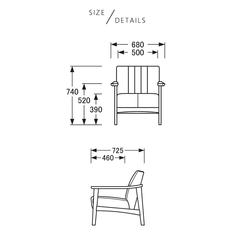 | サイズ | 幅 : 68 奥行 : 72.5 高さ : 74 / SH : 39(cm) |
