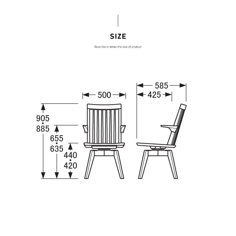 | サイズ | 幅 : 50 奥行 : 58.5 高さ : 90.5または88.5(cm) 座高はお選びください/SH : 42(cm)またはSH : 44(cm) |