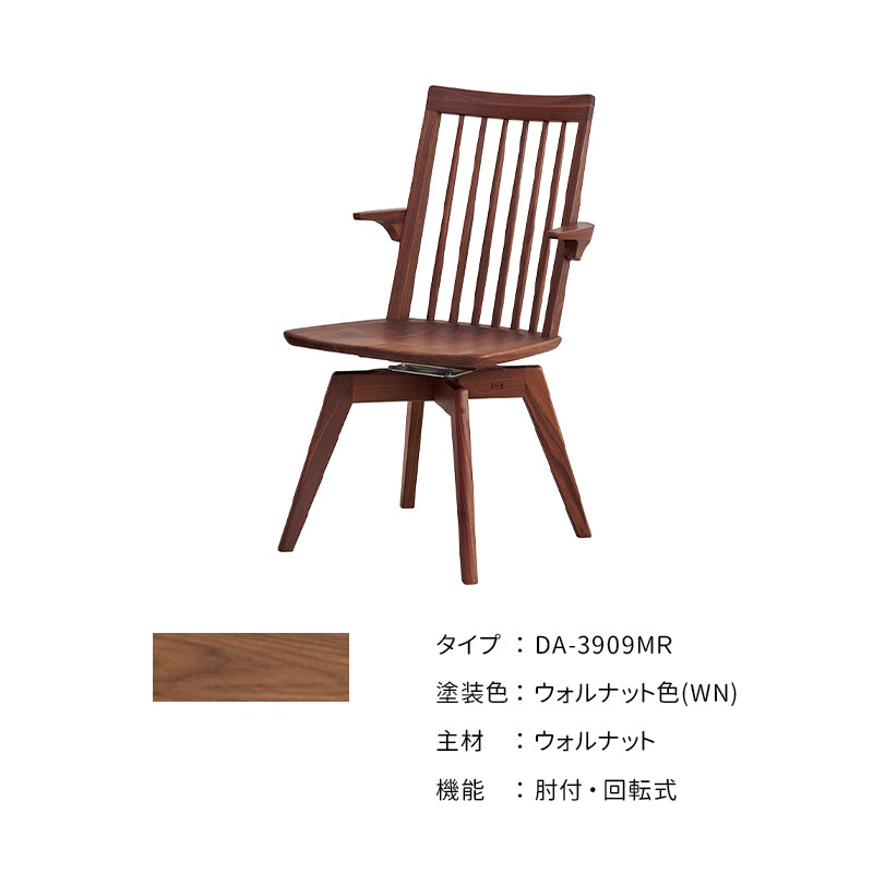 浜本工芸 ダイニングチェア ウォルナット 肘付 回転式 DA-3909MR [No.3900ダイニングチェア]