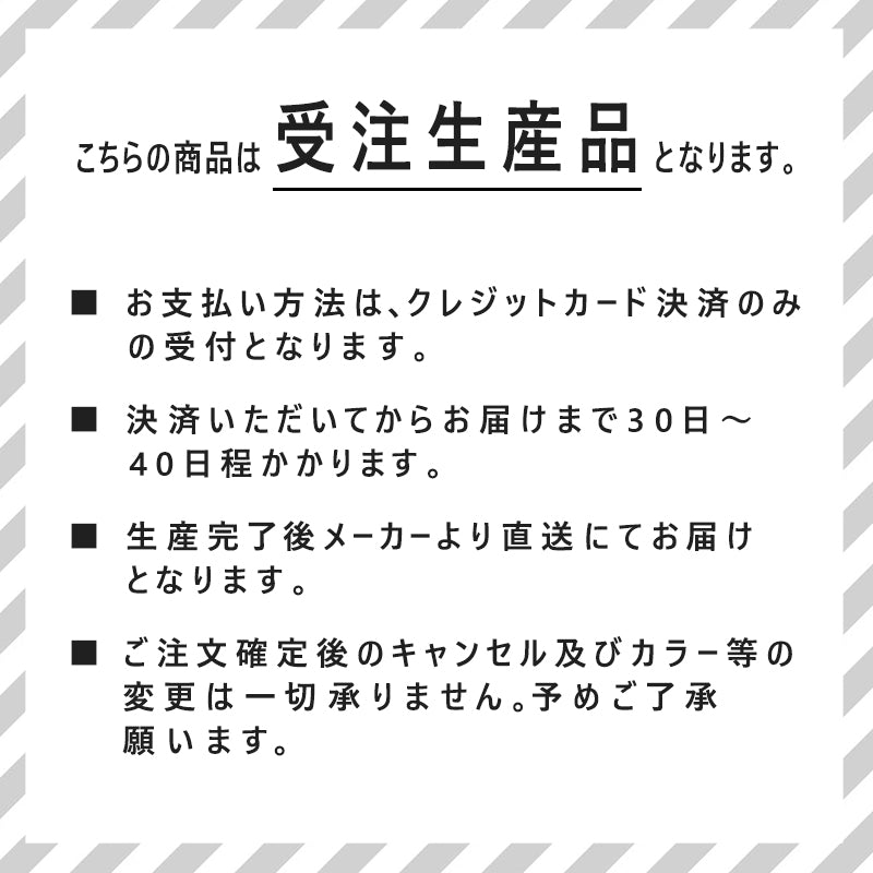 | 備考 | こちらの商品は「受注生産品」となります。 モニターの発色具合によって実際のものと色が異なる場合があります。 離島・一部地域は追加送料がかかる場合があります。 |