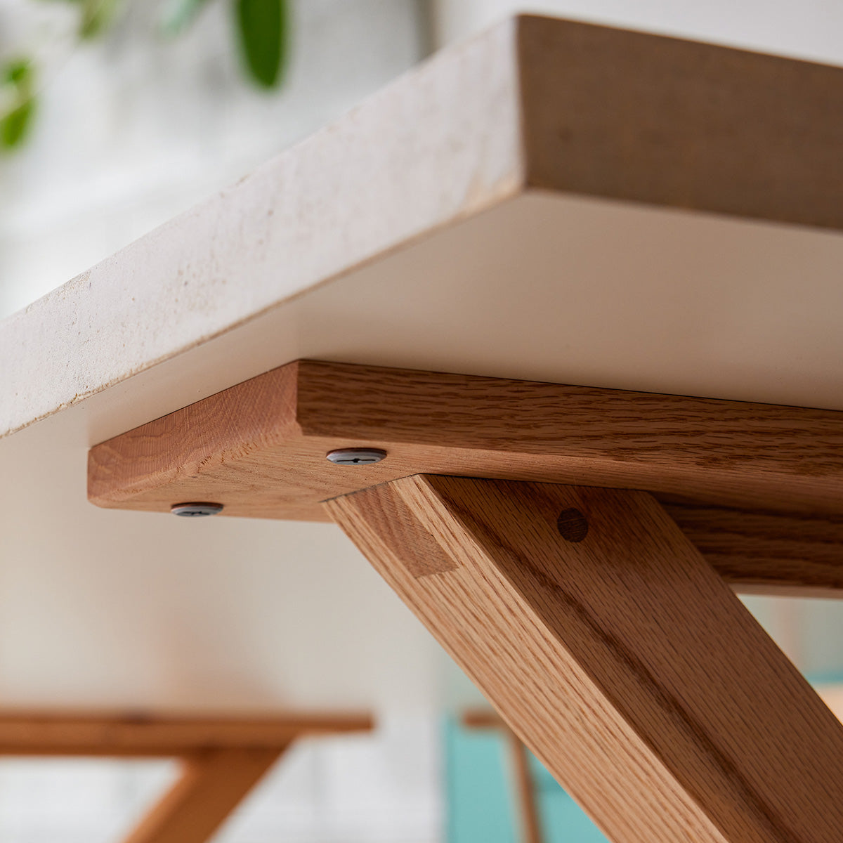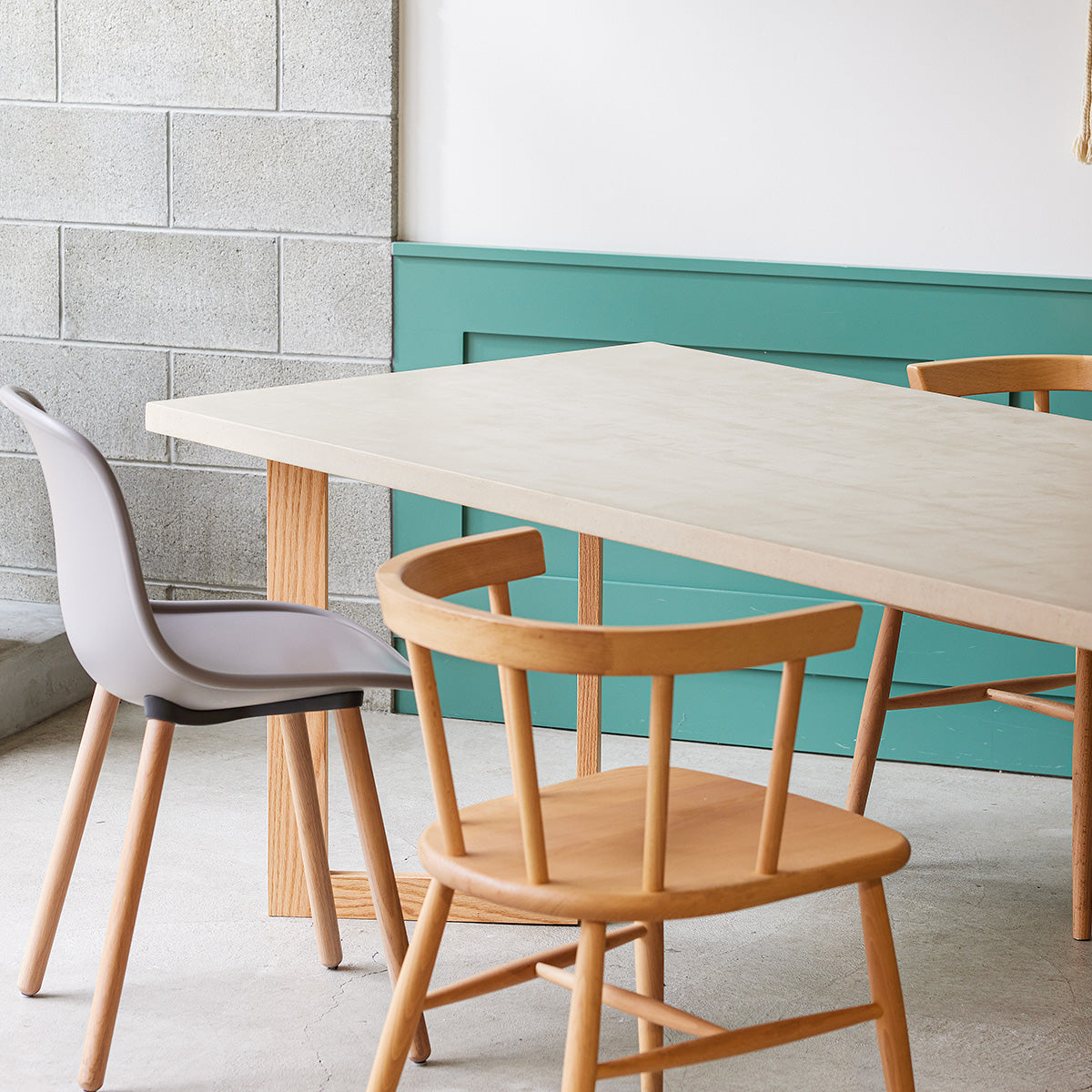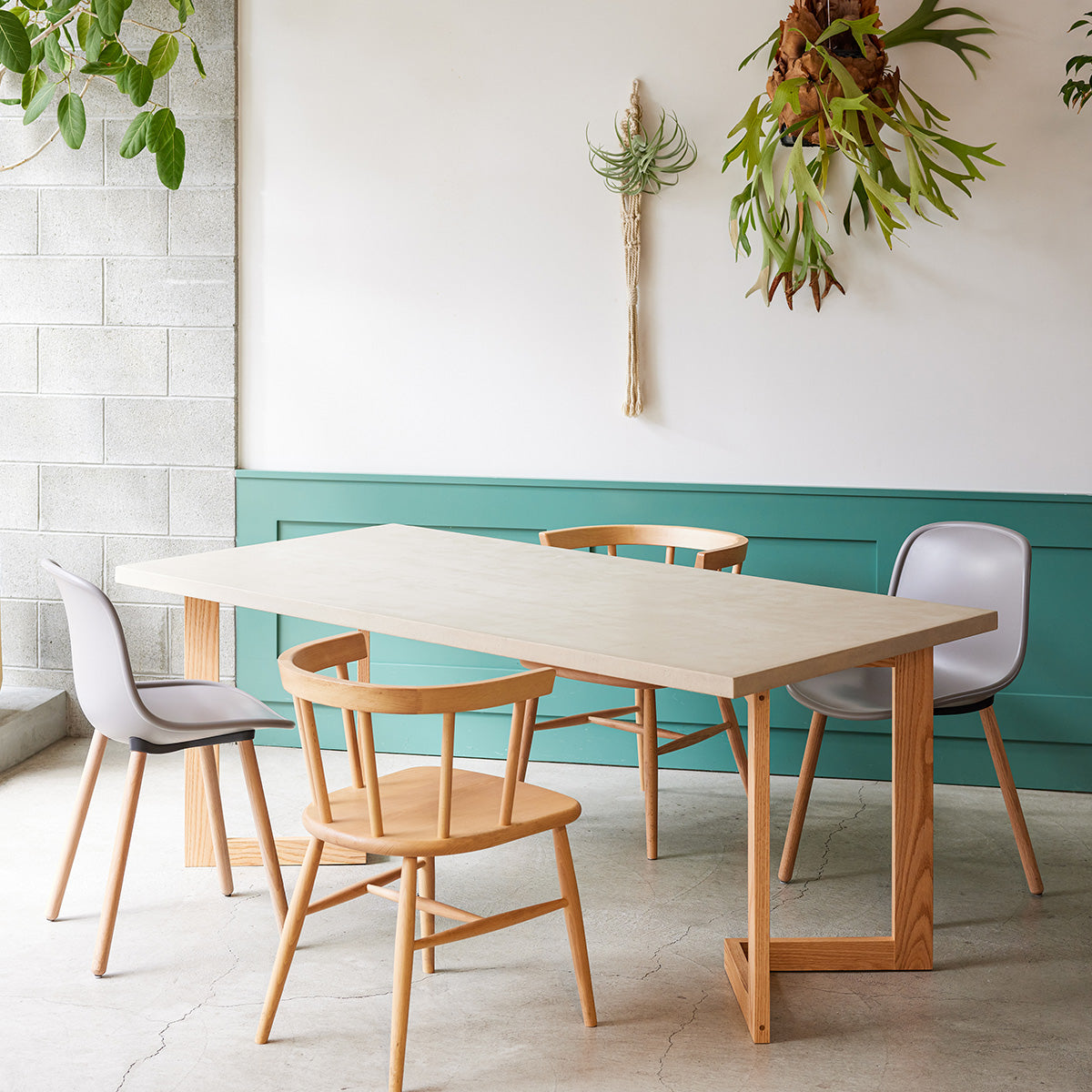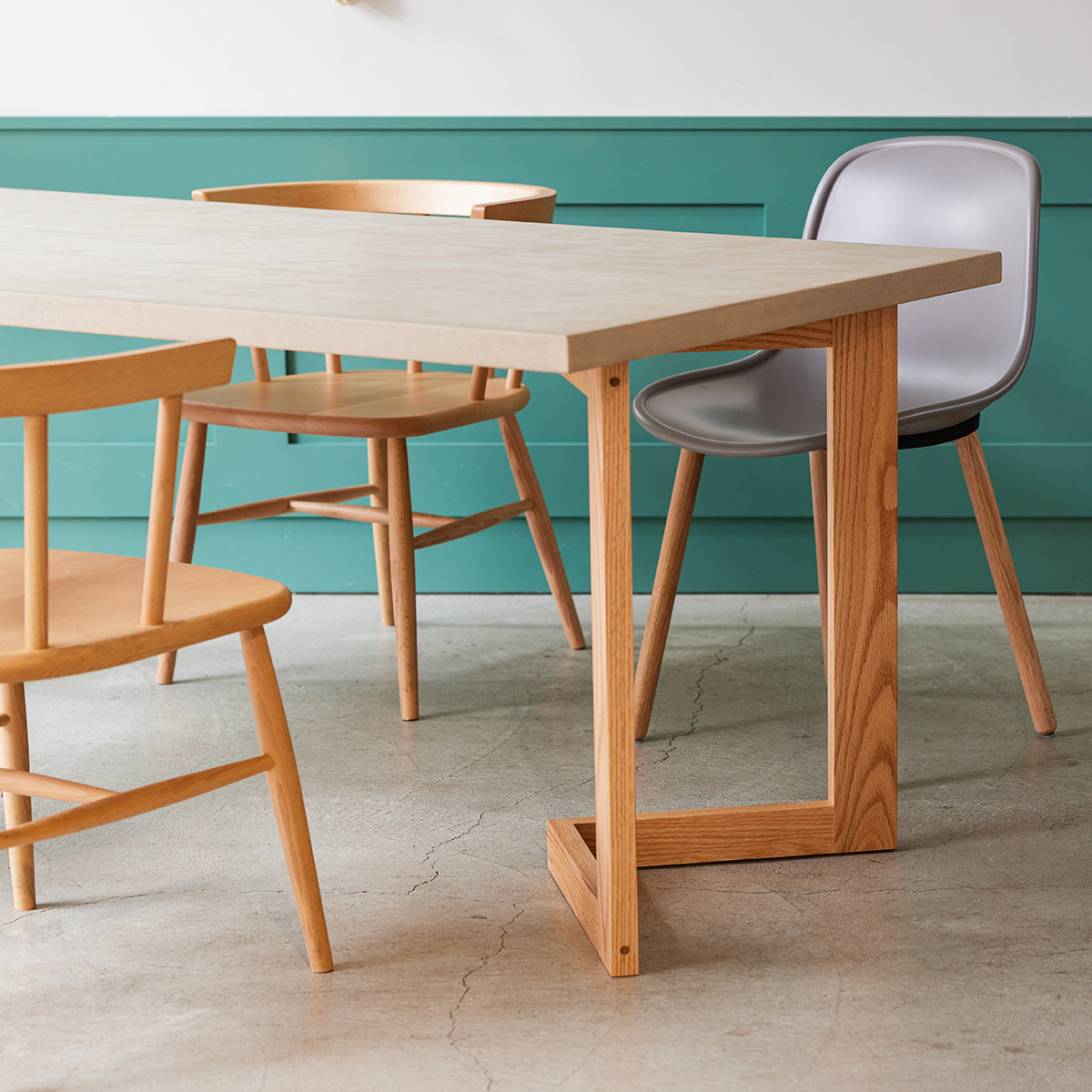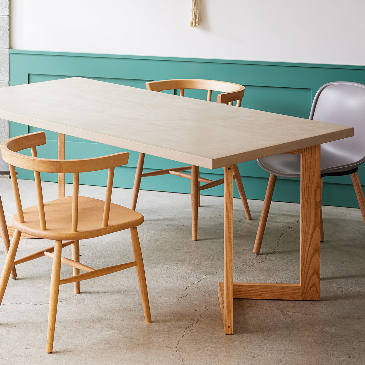 | 素材 | ■ 天板:モールテックス(保護剤:ビピュール) ■ 脚部:オーク(オイル仕上げ) |